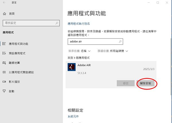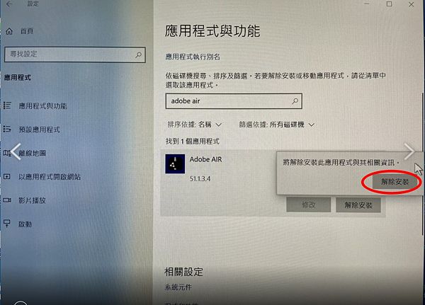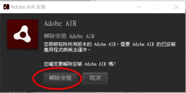 [編輯] 在Adobe AIR軟體上點擊一下,出現"解除安裝"請選擇並點擊