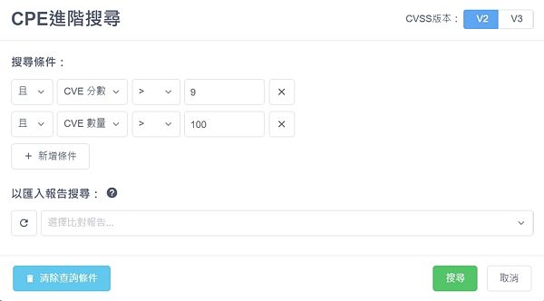 [編輯] CPE進階搜尋請點選下條件(範例如下圖),下完條件請按"搜尋"
