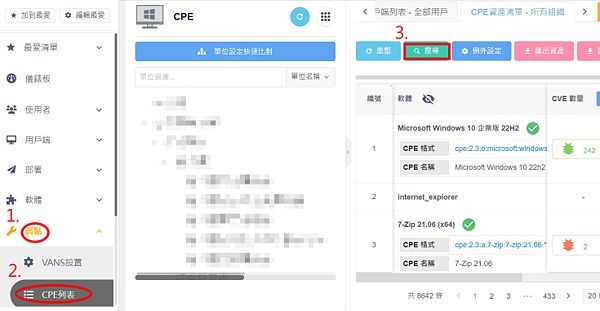 [編輯] 進入後台管理程式後點擊1.”弱點”-->2."CPE列表"-->3."搜尋"