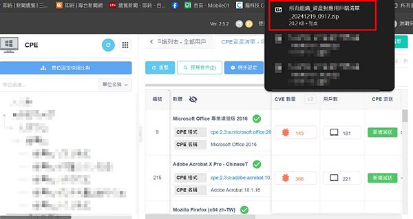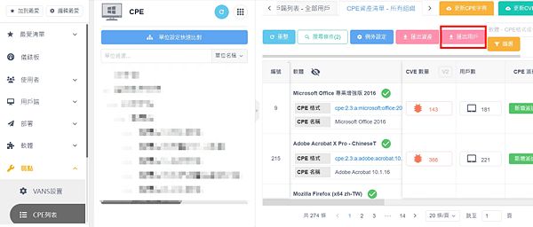 [編輯] 搜尋完後會有一CPE資產清單請點擊”匯出用戶”