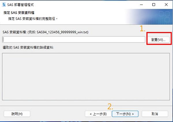 | - | [ | + | = <font size="4px">1.點選"瀏覽"尋找下載的授權檔-->2"下一步"</font><font size="4px" color="#F7A004"> [1. Click "Browse" to locate the downloaded license file --> 2. "Next"]</font> = |
