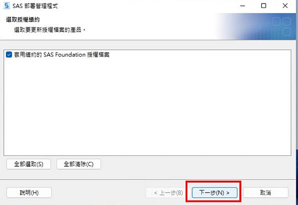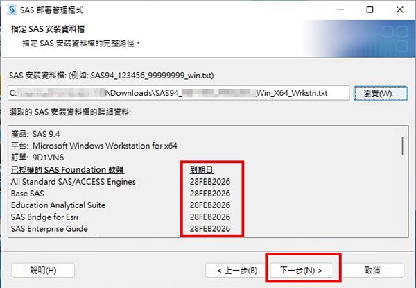 | - | + | = <font size="4px">載入授權檔後畫面如下,確認一下授權日期無誤後,點擊"下一步(N)"</font><font size="4px" color="#F7A004">[ After loading the license file, the screen will appear as shown below. Confirm the license date is correct, then click "Next(N)"]</font> = | |