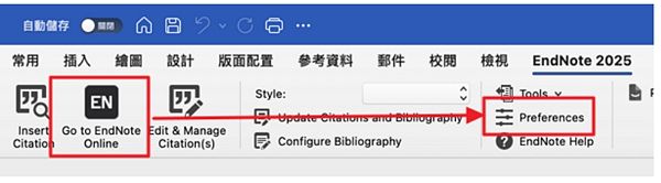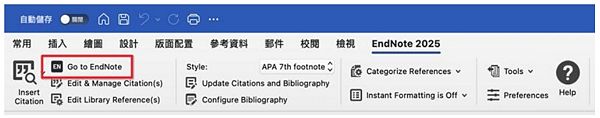 [編輯] EndNote2025安裝完成後,先開啟WORD,確認EndNote2025工具列是否正確顯示