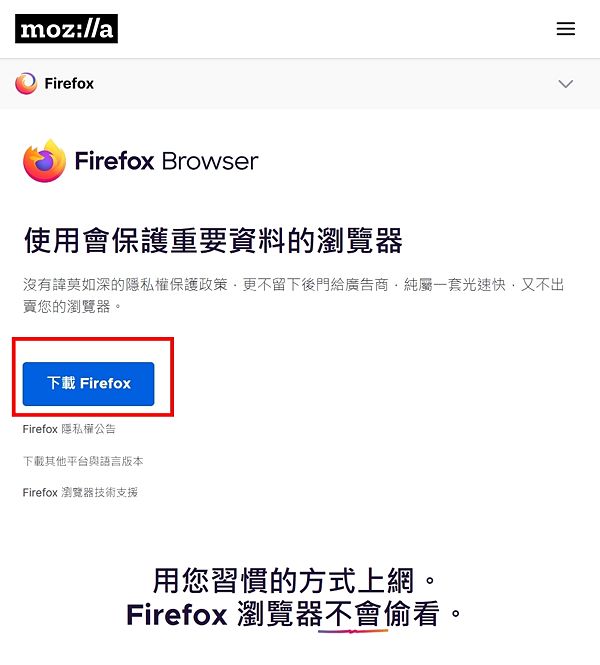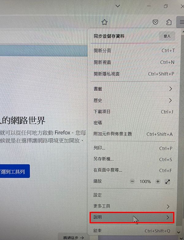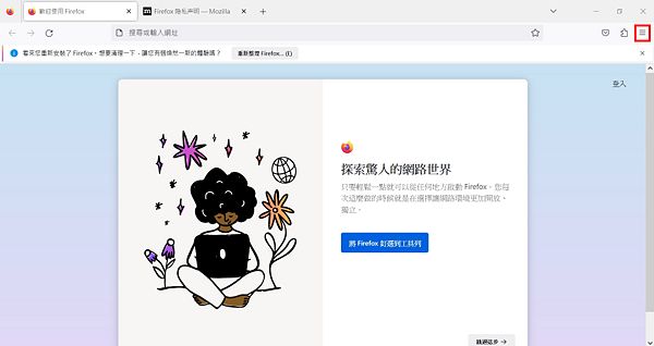 開啟Firefox軟體後,選擇瀏覽器右邊功能如下圖框起來的地方