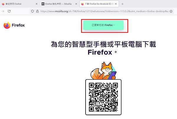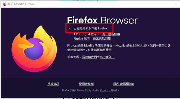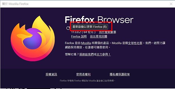 系統會檢查版本後更新,然後點擊"重新啟動以更新Firefox(R)"