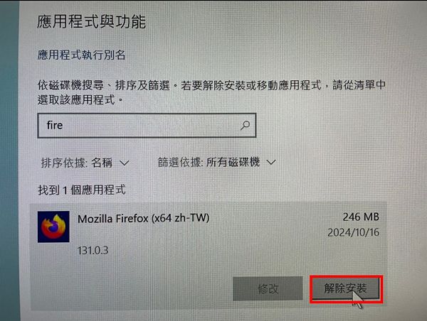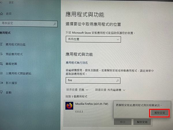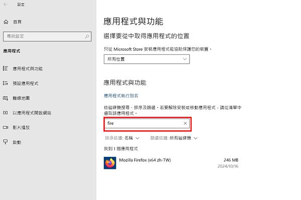 到"設定"內"應用程式與功能",在下圖框起處鍵入關鍵字