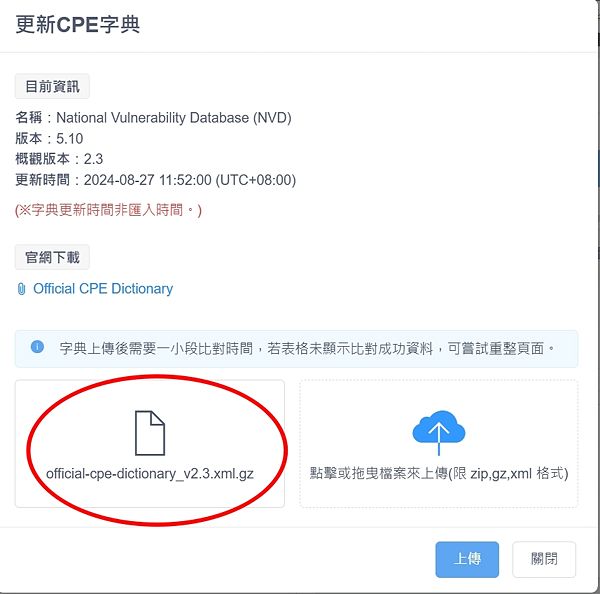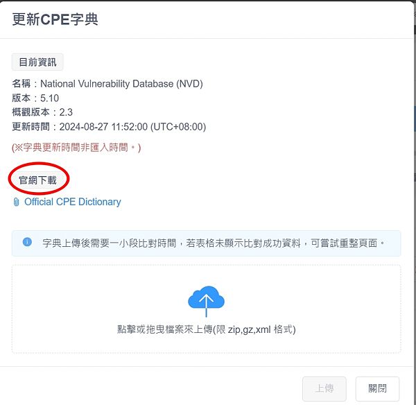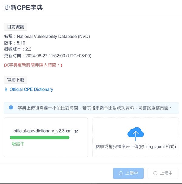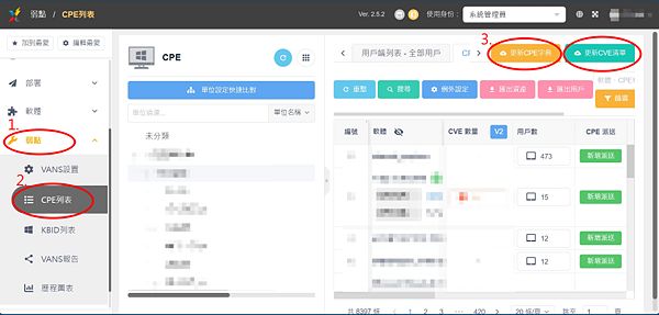 [編輯] 進入後台後依下步驟 1.弱點-->2.CPE列表-->3.更新CPE字典(或更新CVE清單,)